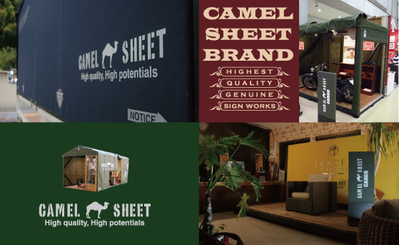そして時には、バギーやジープのルーフとしても、イベントの際のライヴステージとしても、展示ブースや、キャンペーンの仮設事務局としても、またある時には、カフェも、バーも、レストランだって不可能ではないでしょう。どの様な環境にでも『アダプト』できるこのキャメルシートは、まさしくその名の通り、砂漠のラクダの如く、あらゆる人達のライフスタイルを道案内する男達のオアシスでありたいとおもっています。