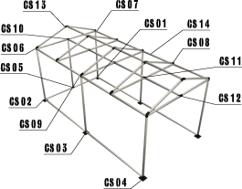 | オリジナル ジョイントパーツを組み合わせることで自由な形に作ることができます。 今回はガレージ用のイメージですが、ユーザーのアイデア一つで様々な物が作れるはずです。 場所の制限や完成した後の作業条件で、いろいろなオプションを組み合わせてマイ・キャメルシートをお楽しみください。 |